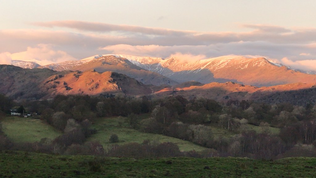 This is my favourite route, as it heads deep into the mountains with spectacular views and beautiful woods. It also passes three of the most picturesque lakes – Elterwater, Grasmere and Rydal Water. Again there are cafes at Skelwith Bridge and Elterwater, plus the National Trust at Sticklebarn. There are also a number of pubs. There are several steep climbs – up to Skelwith Bridge, out of Elterwater through the quarries and the climb over Red Bank to Grasmere.