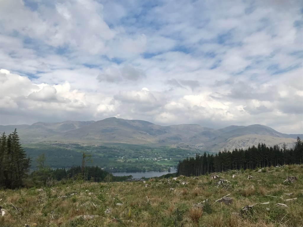 The route reaches the highest point of those described here, hence the climbs are sustained, albeit steady and the views across to the Coniston Fells make them worthwhile. The steeper climbs are actually on the lower slopes above the forest centre – with a corresponding steep descent down to it, and also crossing the ridge from Hawkshead to Wray, with a particularly steep descent down to Blelham Tarn.
